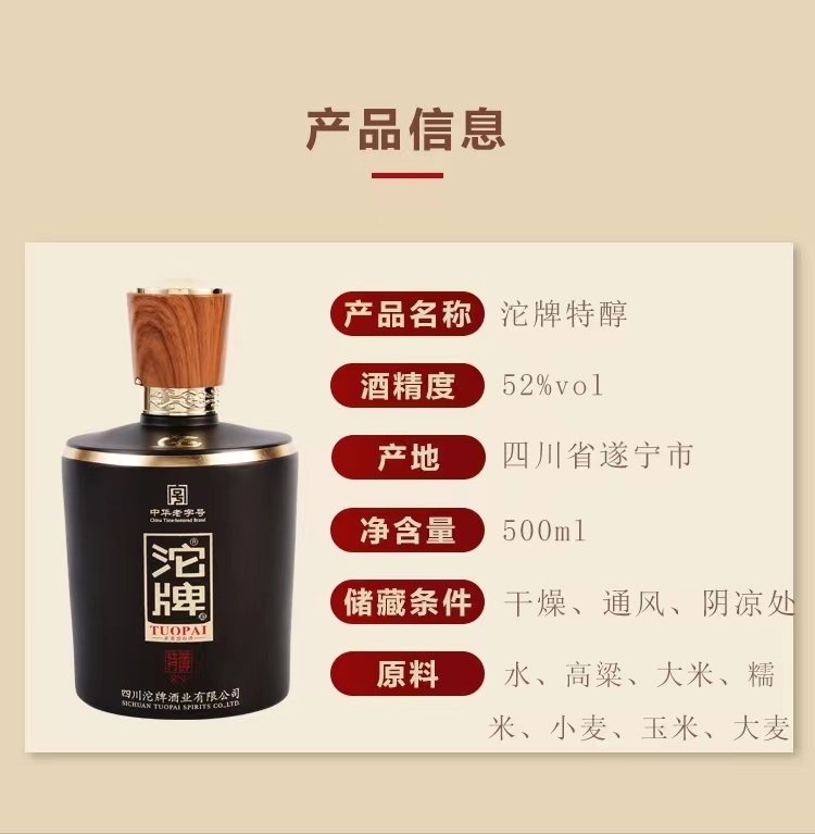 52°沱牌特醇8N/整箱6瓶(招商价:98元/瓶;588元/箱)